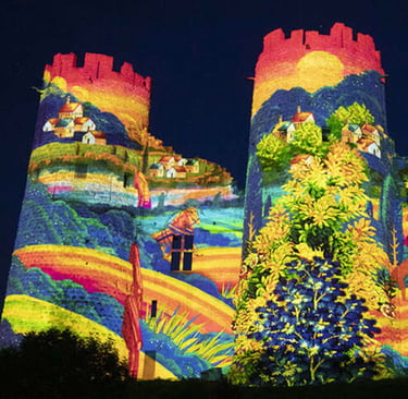 Un parcours de vidéo-mapping et de projections nocturnes sur des monuments emblématiques du département.On retrouve généralement des étapes à Moulins, Montluçon, Vichy, Cusset, Néris-les-Bains, Bourbon-l’Archambault, etc.